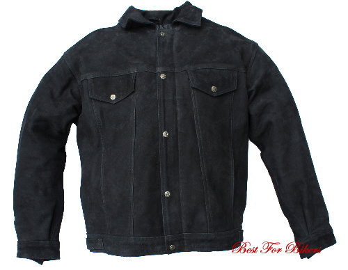 Eine Motorrad-Jeansjacke aus weichem Nubukleder. Im Style einer typischen Jeansjacke gehalten, aber mit Reißverschluss und Druckknöpfen statt der üblichen Knopfleiste. Am Handgelenk befindet sich ebenfalls ein Reißverschluss sowie Druckknöpfe gegen lästigen Windzug. 2 Innen- und 2 Außentaschen runden diese Jeansjacke ab. Protektorentaschen an Schulter, Ellenbogen und Rücken zum Nachrüsten von Protektoren machen diese Jacke auch motorradtauglich.